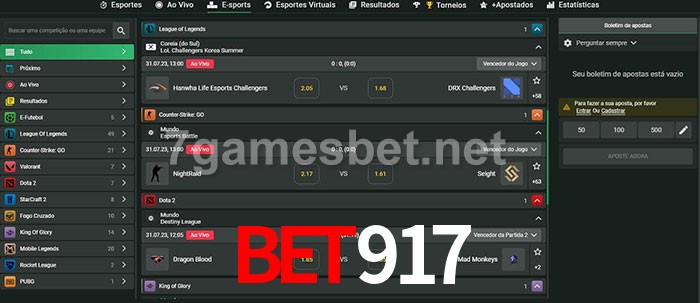 A aposta bet917 oferece aos jogadores a experiência mais conveniente de apostas em eSports!